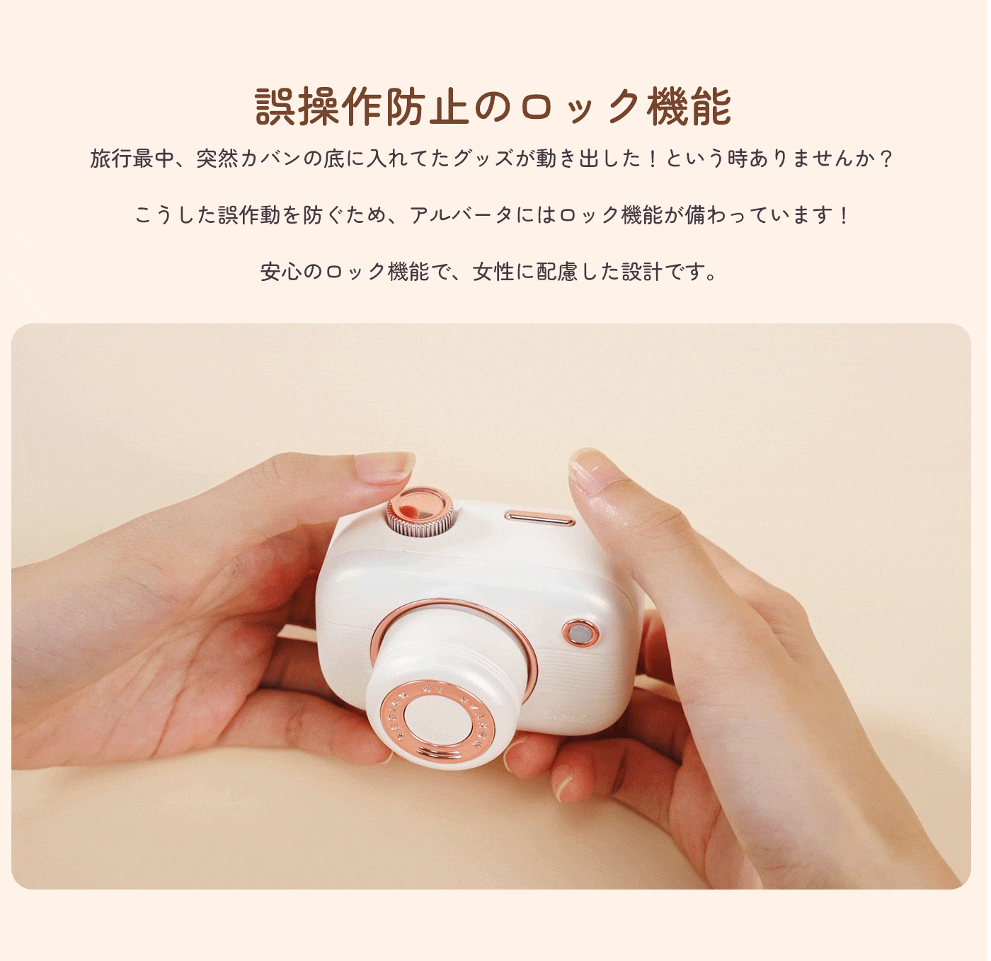 持ち運び中にカバンの中で不意に起動してしまう事ってありますよね。事前にロックをかけておくことで、不意の起動を防止することができます。