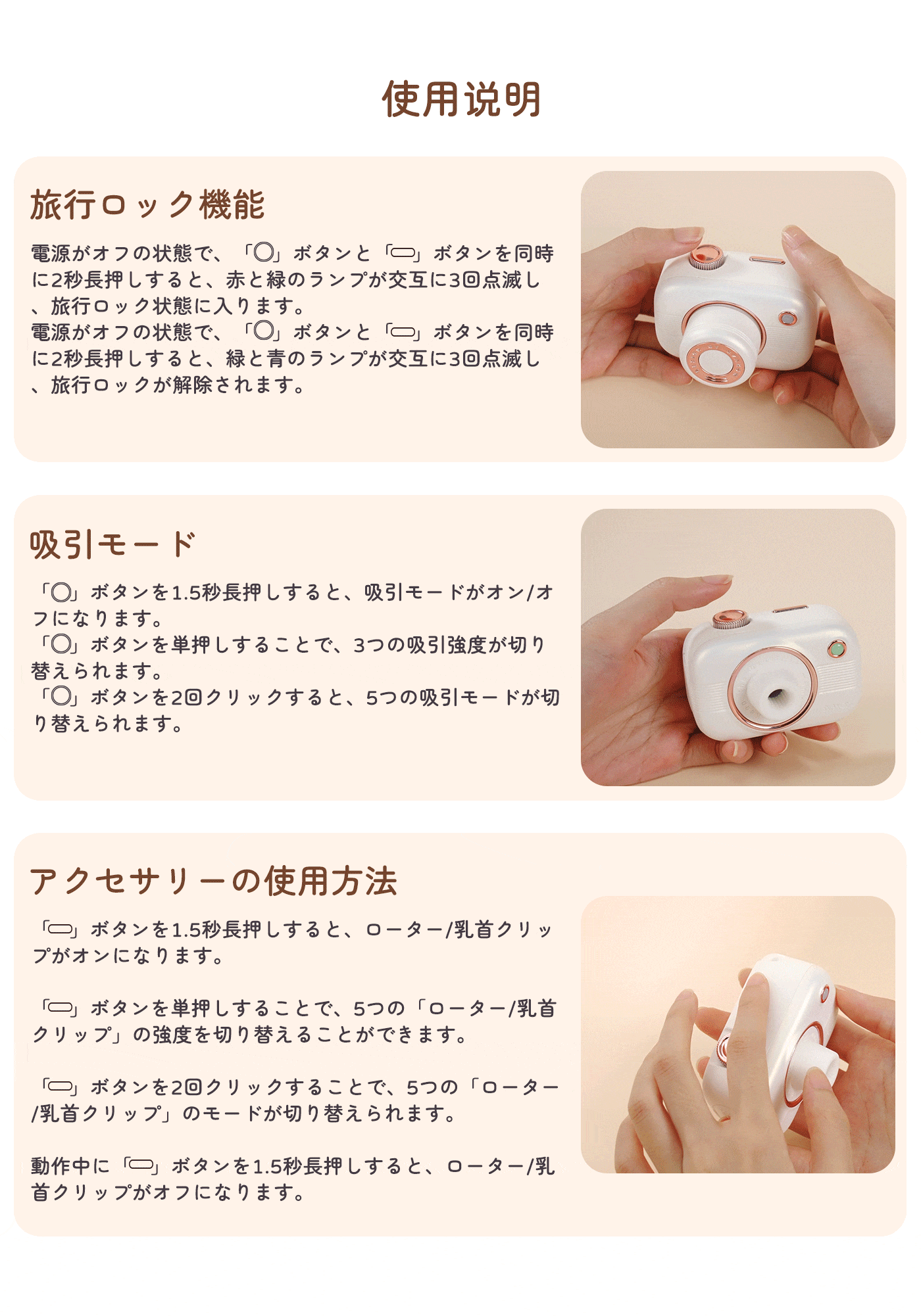 本体ボタンを駆使して、振動・吸引・メモリ・ロック等、全ての機能を操作することができます。