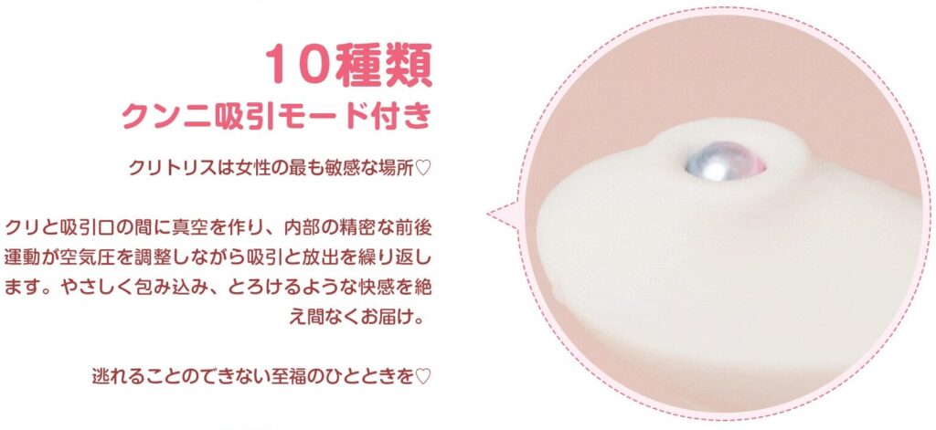 | 音楽モード | 音楽に合わせて吸引してくれます。セルフプレジャーにアクセント。 |